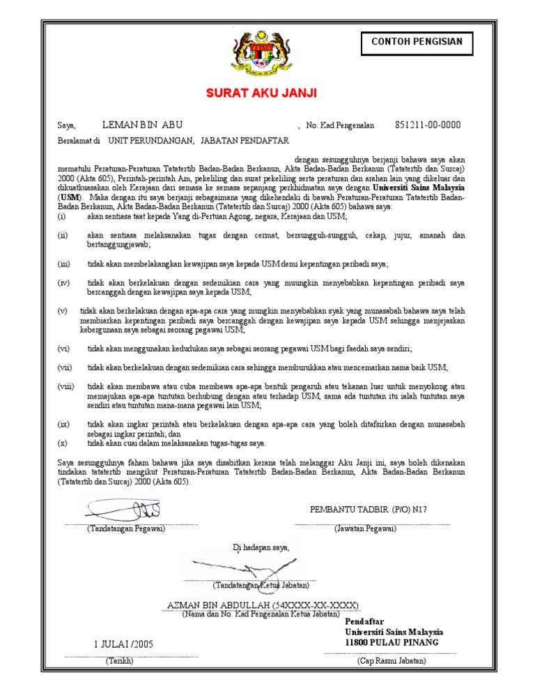 Mereka yang ketakutan ini adalah. Format surat aku janji adalah seperti di lampiran b. Kini saya sudah tamat pengajian dan jumlah yang saya telah terima cuma rm45000 contoh.
